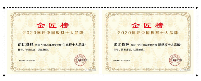 時間步入金秋九月,備受關注由中國木業(yè)網(wǎng)主辦的2020中國板材金匠榜網(wǎng)絡評選落下帷幕。在近千家品牌中,偉勝集團旗下主打品牌諾比森林實力“亮劍”,一舉斬獲四項行業(yè)重量級大獎——“匠心板材十大品牌”、“生態(tài)板十大品牌”、“行業(yè)影響力板材十大品牌”、“阻燃板十大品牌“,為高質量的發(fā)展篇章增添了濃墨重彩的一筆。